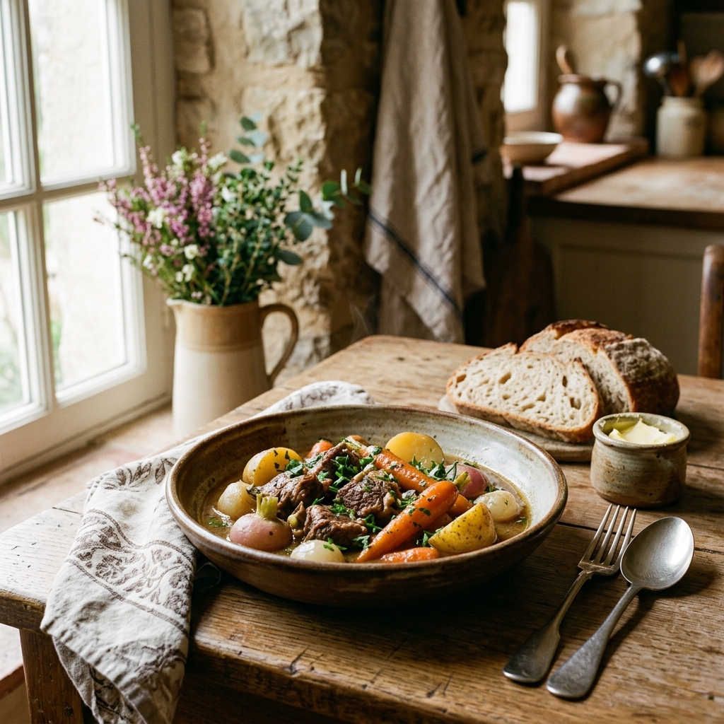 Découvrez la recette emblématique du Navarin d'agneau revisité par l'Élevage Maupas, un plat printanier généreux à base de collier d'agneau et de légumes du jardin.